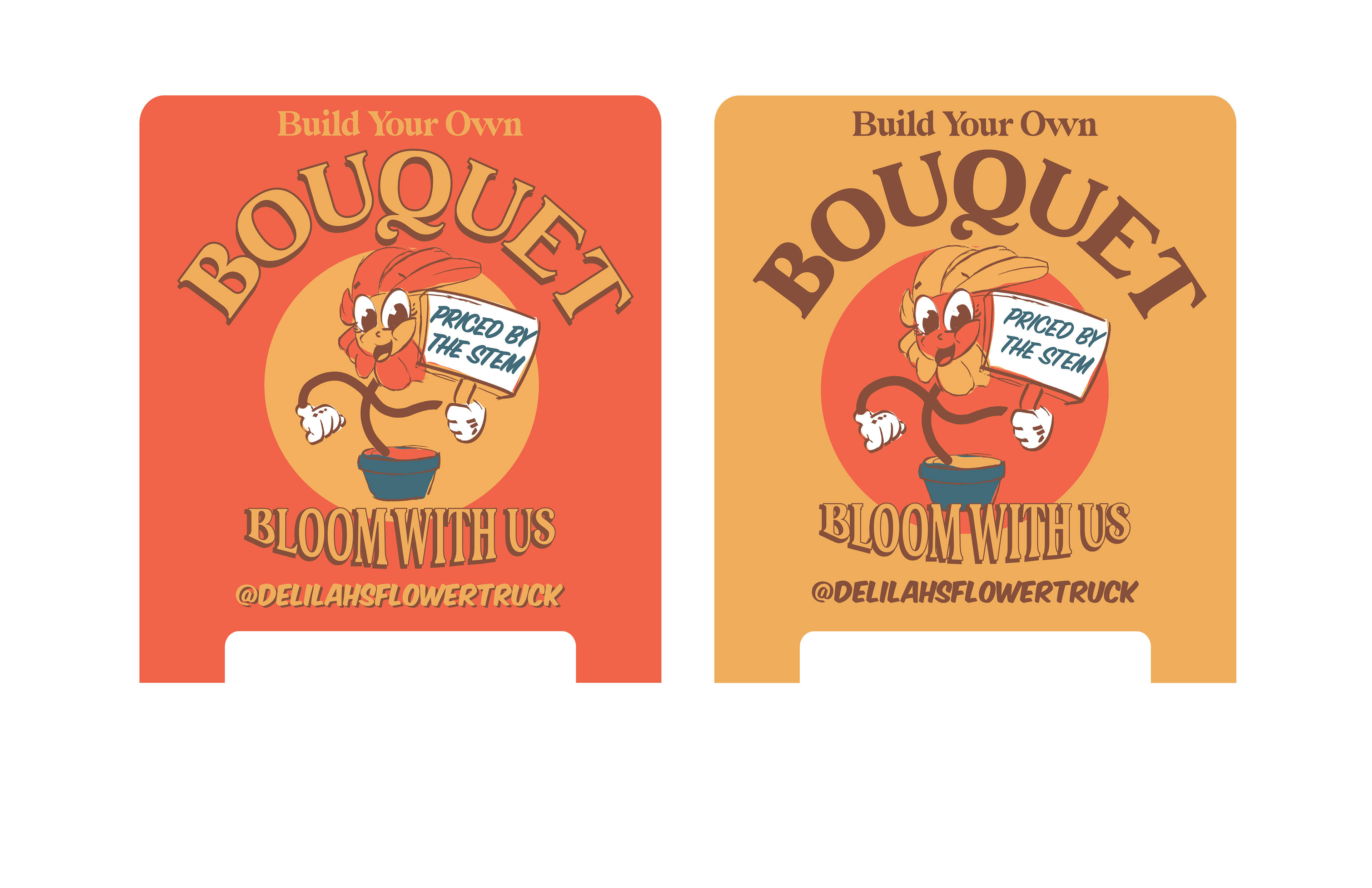 Designed, hand-crafted and hand-painted this 32"x36" A-Frame sign for a pop-up flower truck business. Client was inspired by vintage layout and cartoon illustration styles.